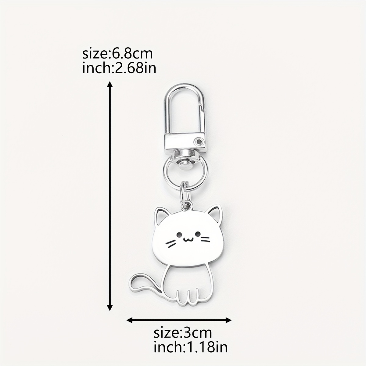 "1 new Japanese-style stainless steel keychain for cats, cute cat pendant, couple key chain pendant"