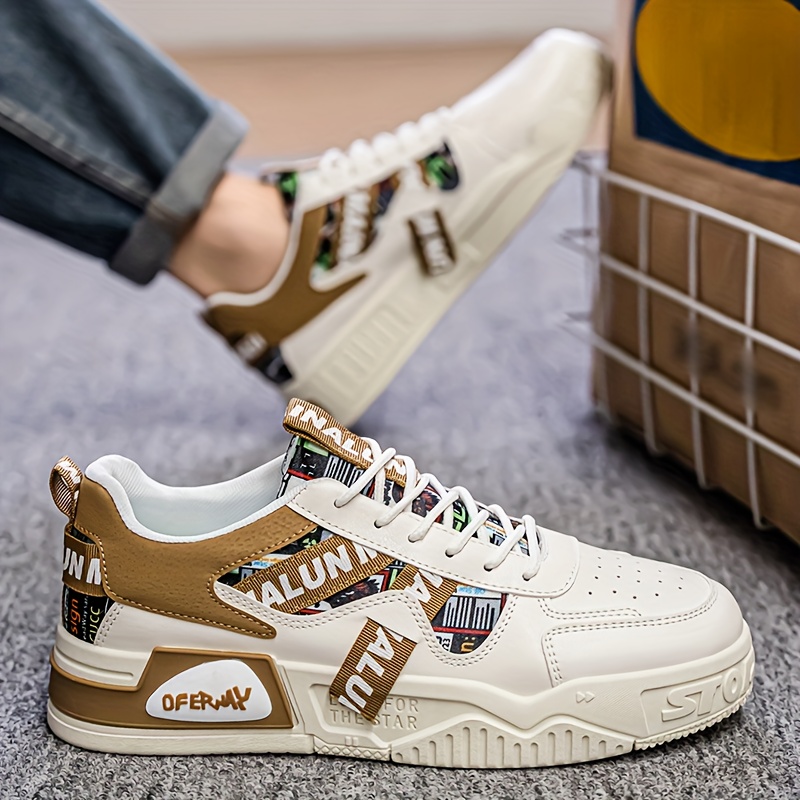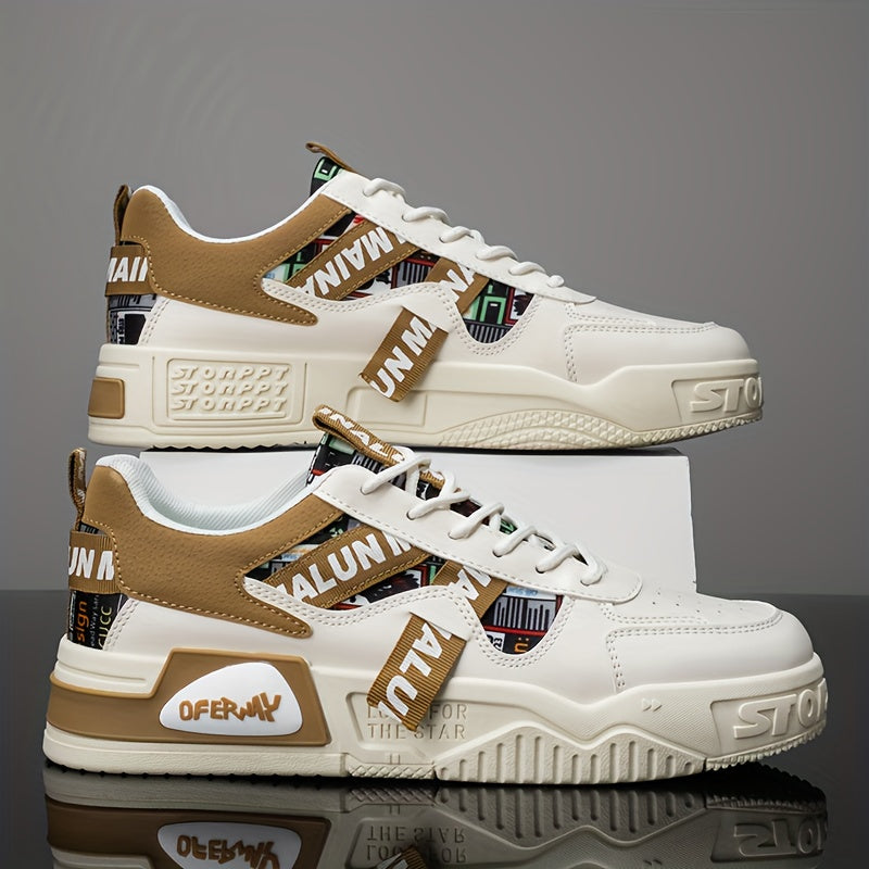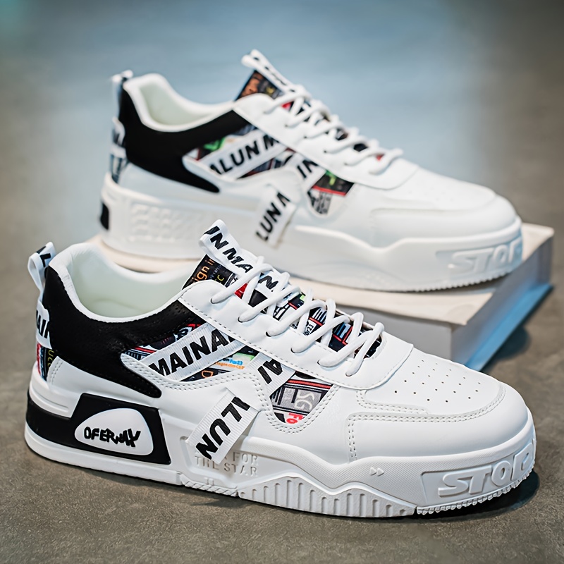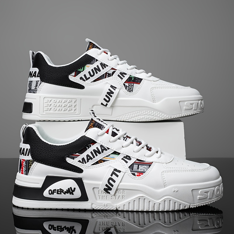 1 Pair Men'S Low-Top Sneakers - Breathable EVA Insoles & Random Letter Webbing, All-Season Lightweight Sneakers with Arch Support, Cushioned PVC Sole & Lace-Up Closure, / - For Running, Travel, Skateboarding, Travel Footwear, Trendy Footwear