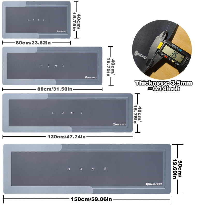 1pc Diatom Mud Kitchen Mat - 3.5mm Thick, 4.41LB/m², with Natural Rubber Base, Super Non-Slip & Scratch-Resistant Surface, Easy to Clean, Comfortable Standing Mat for Kitchens, Bathrooms, Entryways - Multiple Sizes Available, Kitchen Mats for Floor