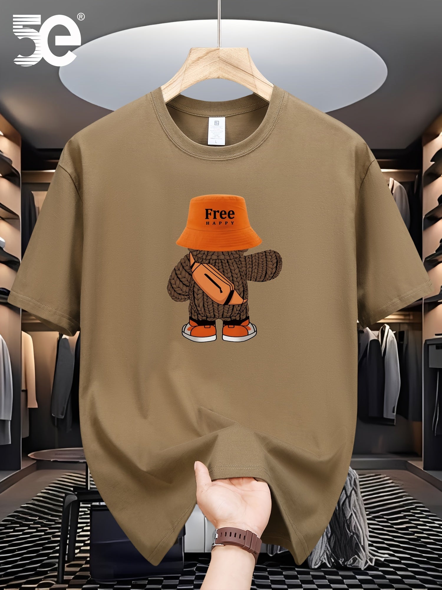 5E Brand Print T-Shirt Made of 100%, Heavyweight New Style, Pure Short-Sleeve Summer T-Shirt, Loose Fit, Round Neck, Men'S Short-Sleeve Trendy Shirt