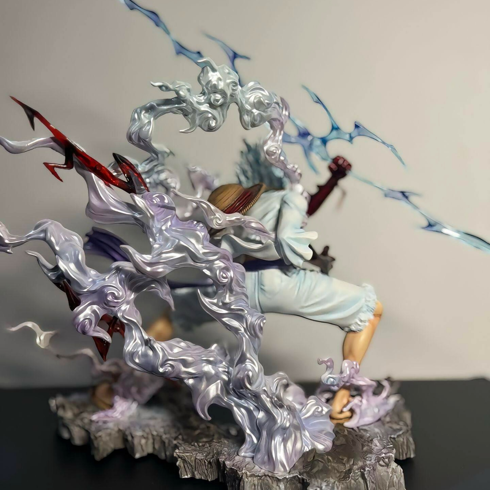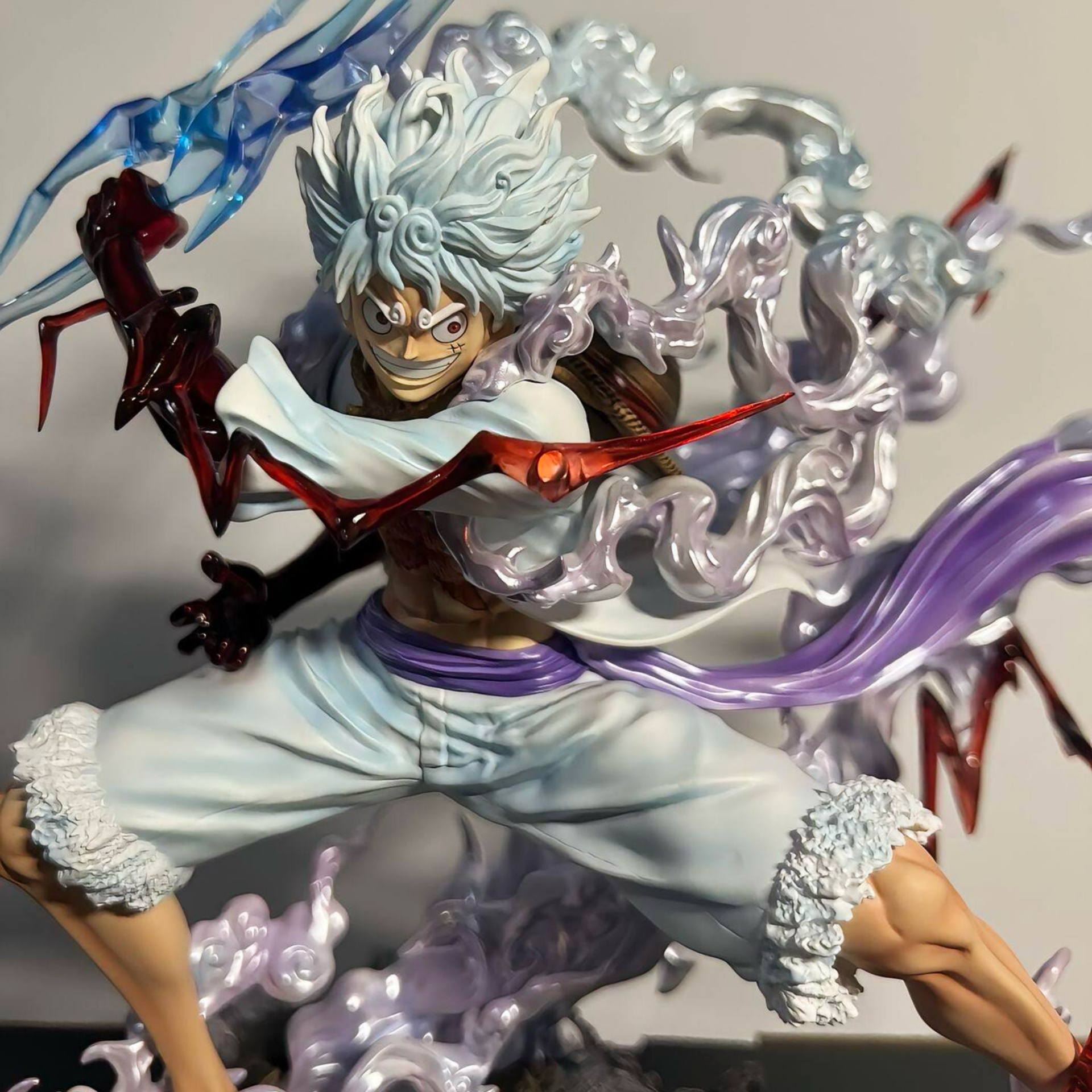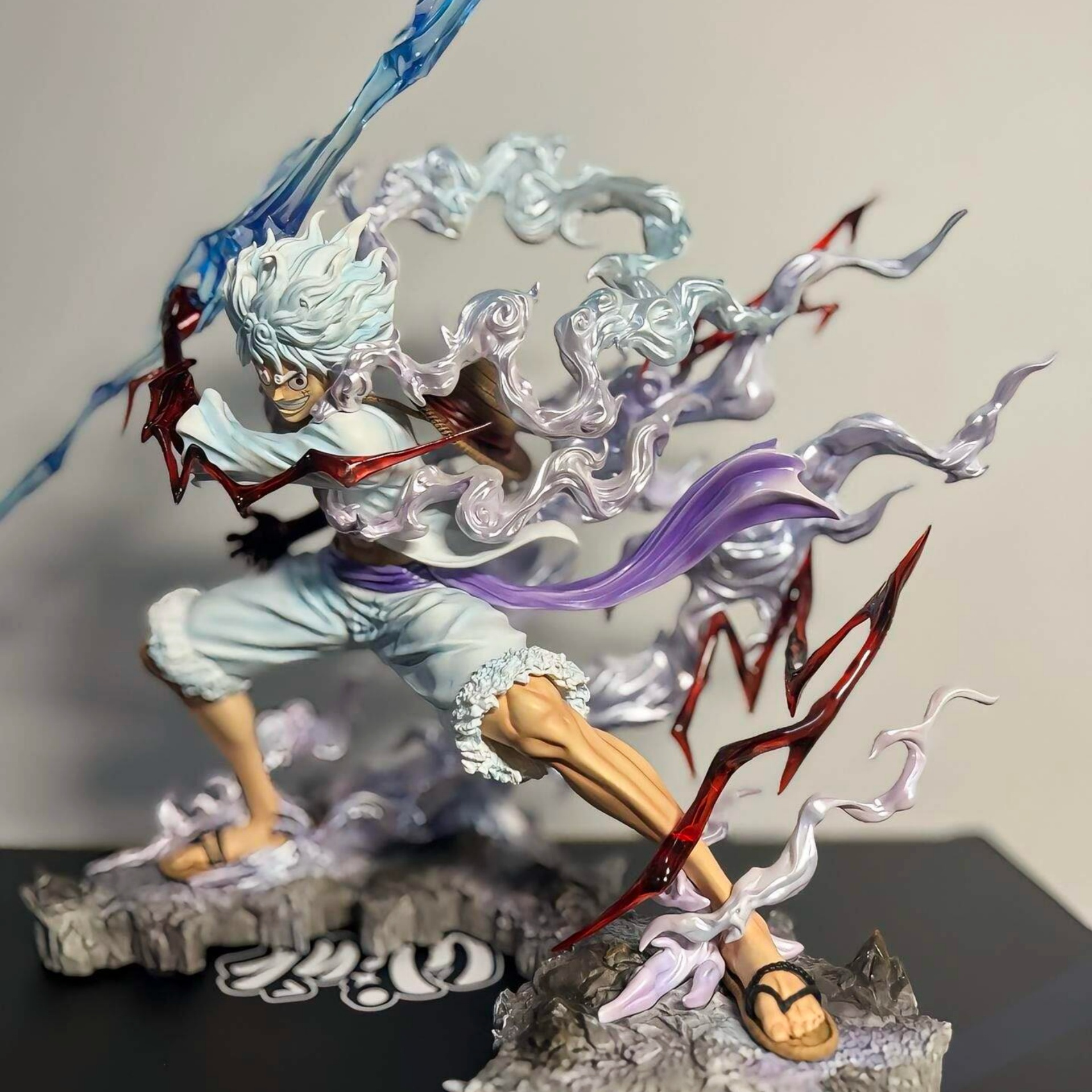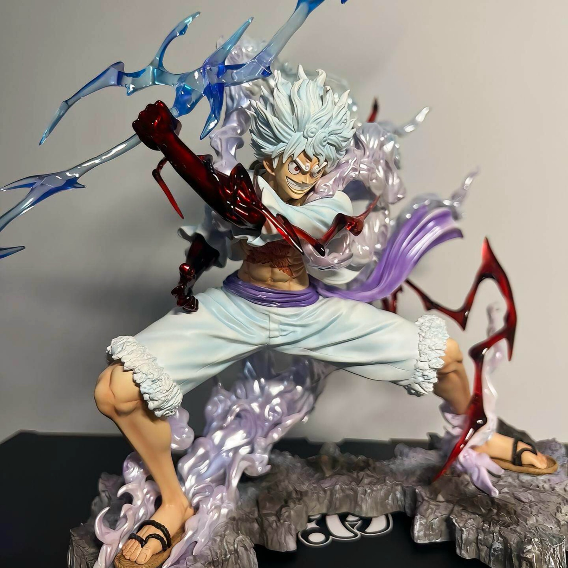 Large Premium Edition Multi-Color Special Effects Action Figure - White-haired and White-clad Pose Figure with Blue-purple Flame Patterns and Exquisite Rock Base Details. The Dynamic Pose Exudes Full Tension, Perfect for Home Display Cabinets